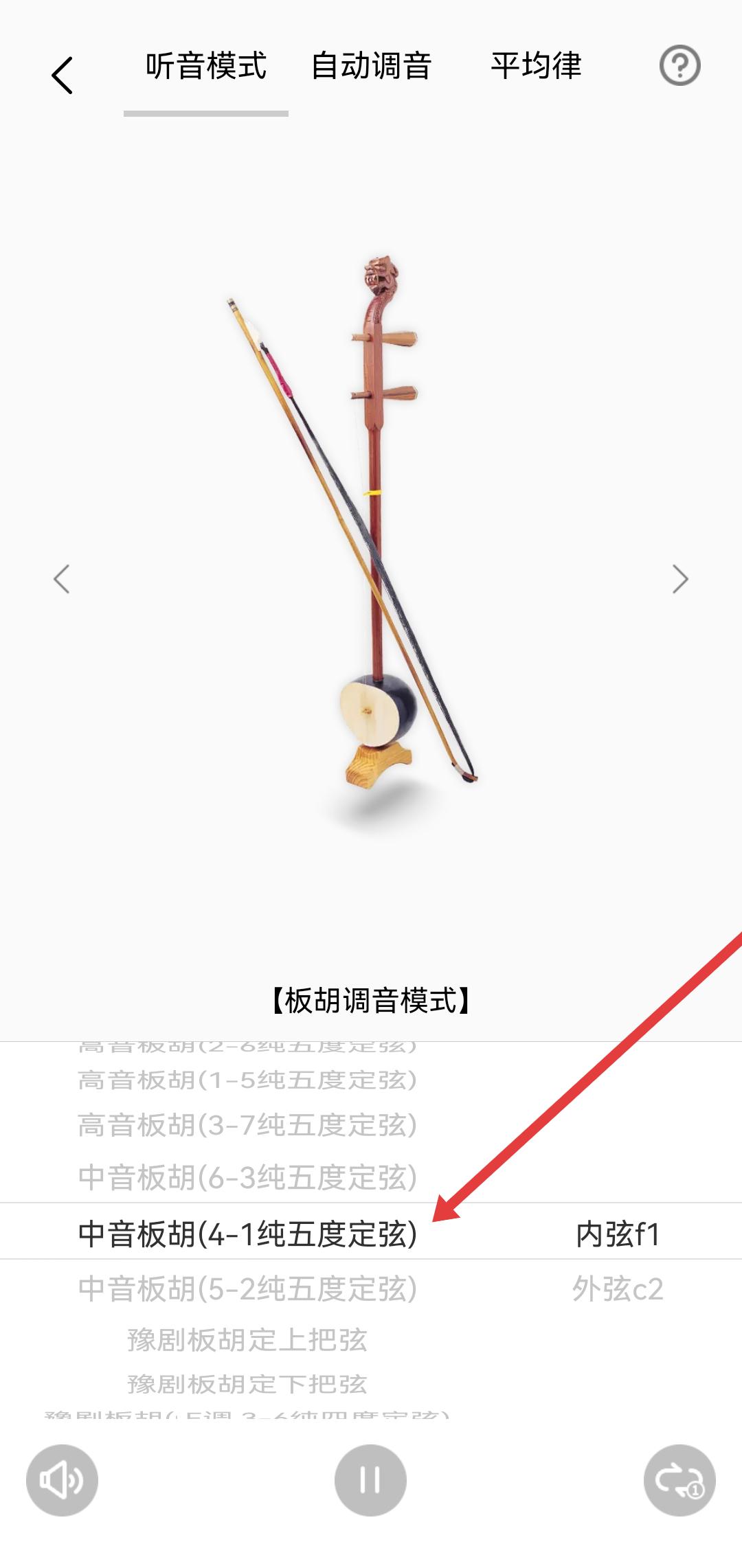 2、在樂器展示界面,選擇需要調(diào)音的民樂樂器如板胡,進(jìn)入該樂器的專屬調(diào)音界面。