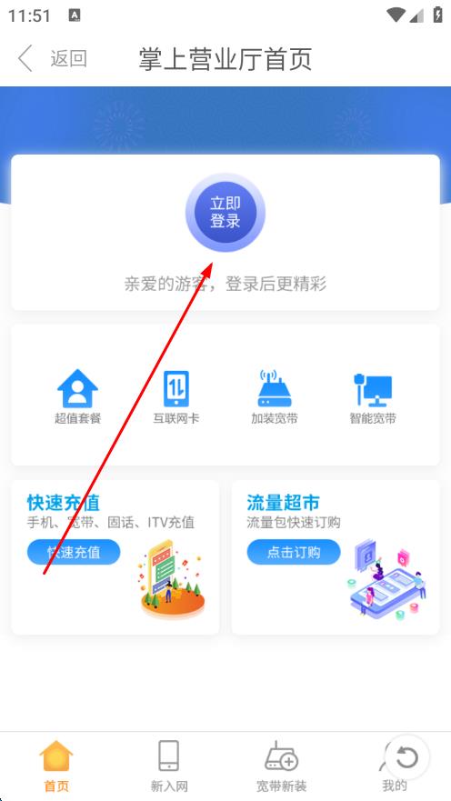 3、點擊移動運營商服務后,會跳轉至對應的掌上營業(yè)廳頁面,點擊立即登錄。