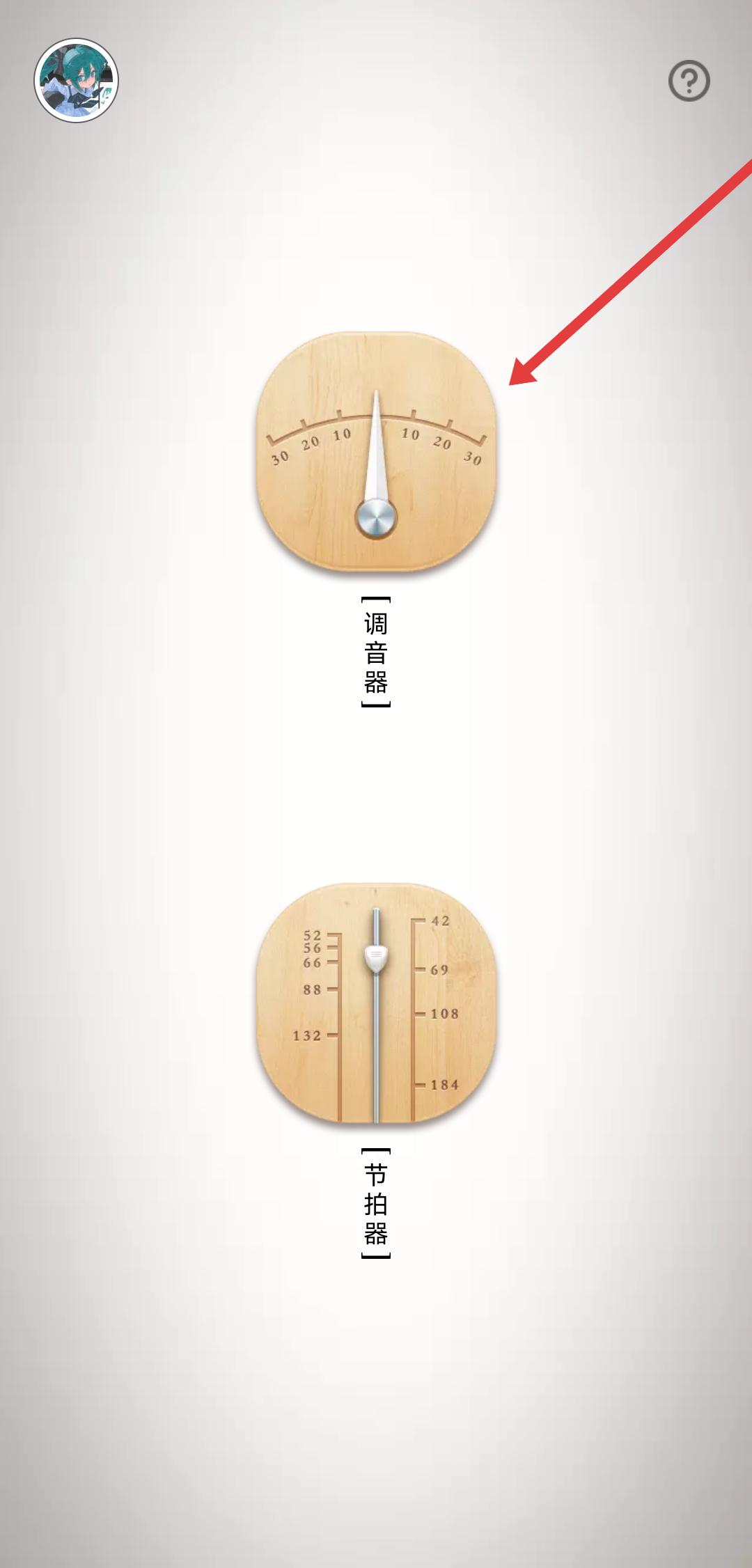 1、打開(kāi)民樂(lè)調(diào)音器在功能選擇界面點(diǎn)擊調(diào)音器,進(jìn)入調(diào)音功能的頁(yè)面。