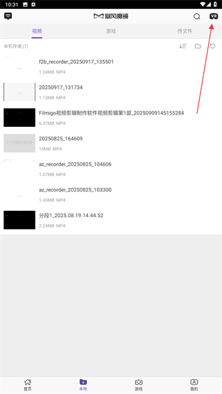 2、進入本地視頻的界面內,點擊右上角VR的功能按鈕。