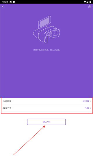 3、設置好眼鏡、操作方式后,再點擊進入VR的按鈕即可。