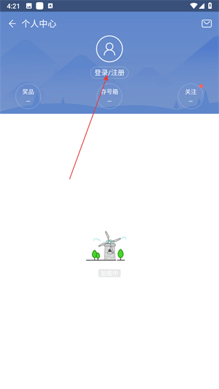 2、在個(gè)人中心頁(yè)面,點(diǎn)擊登錄/注冊(cè)按鈕,彈出登錄注冊(cè)界面。