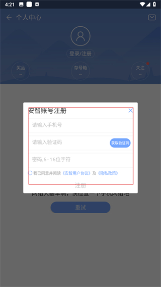4、在注冊(cè)頁(yè)面,輸入手機(jī)號(hào)、驗(yàn)證碼、密碼,勾選同意協(xié)議完成注冊(cè)。