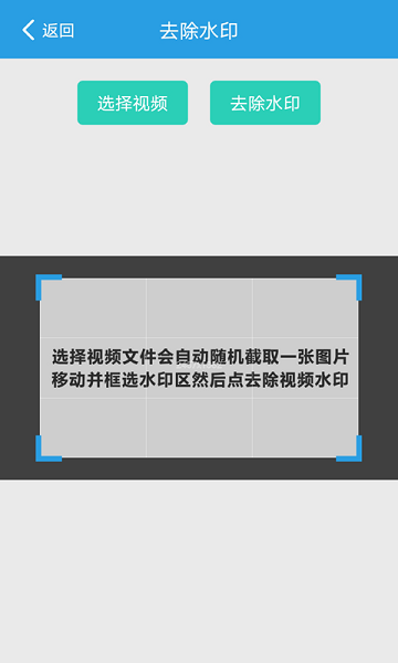 4.視頻去除水印功能:可以掃描手機(jī)中的相冊、下載等目錄中視頻文件,然后選擇要去除水印的視頻并框選水印區(qū)域,點(diǎn)擊去除水印。