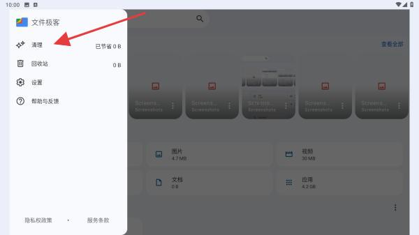 2、在左側(cè)彈出的選項中,找到并點擊清理的功能按鈕。