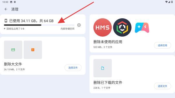 3、進入到清理的界面內(nèi),點擊內(nèi)部存儲空間的區(qū)域。