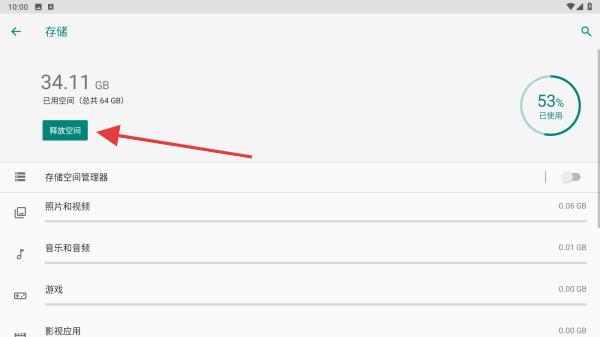4、在存儲的界面內(nèi),點擊釋放空間的功能按鈕即可完成清理。