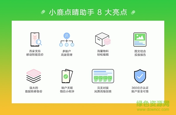 小鹿點睛營銷助手是原360點睛營銷平臺,是一款界面美觀、功能強大、操作流暢、用戶體驗極佳的360推廣工具。360官方認證,保障賬戶安全。輕松支持百萬級數(shù)據(jù),為您更加輕松、有效地運營360推廣賬戶提供了強有力的技術(shù)支持。