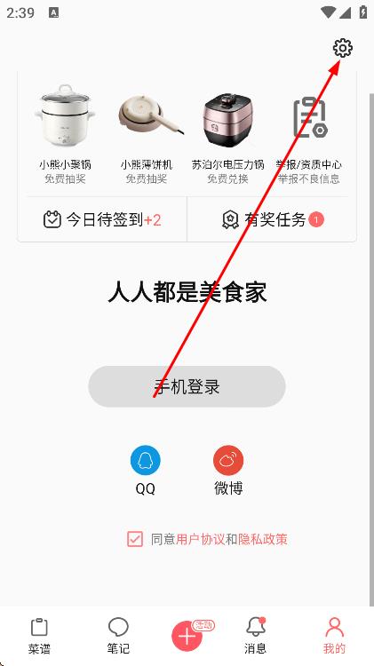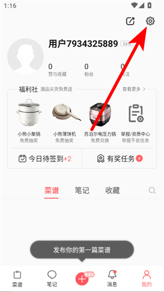 2、在個人中心頁面,點擊右上角設置圖標,進入設置界面。