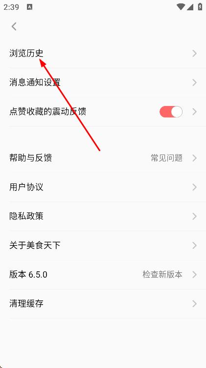 3、在設置頁面中,找到并點擊瀏覽歷史選項。