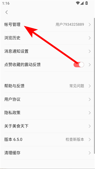 3、在設置界面里,點擊帳號管理選項,進入帳號管理頁面。