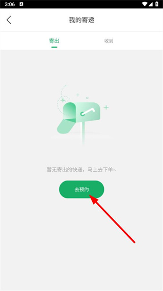 3、在我的寄遞頁面,點(diǎn)擊去預(yù)約按鈕,進(jìn)入寄遞服務(wù)頁面。