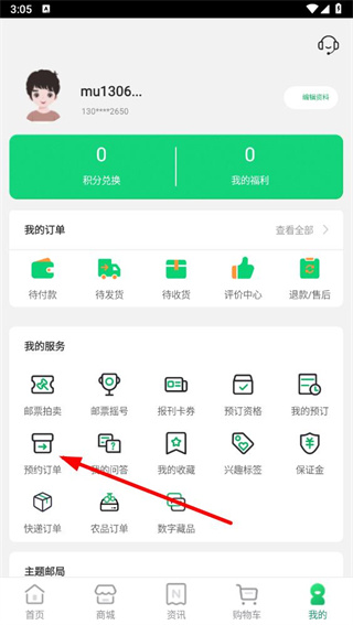 2、在我的頁面,點(diǎn)擊預(yù)約訂單選項(xiàng),進(jìn)入我的寄遞頁面。
