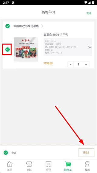 3、勾選想要?jiǎng)h除的商品,點(diǎn)擊右下角刪除按鈕。