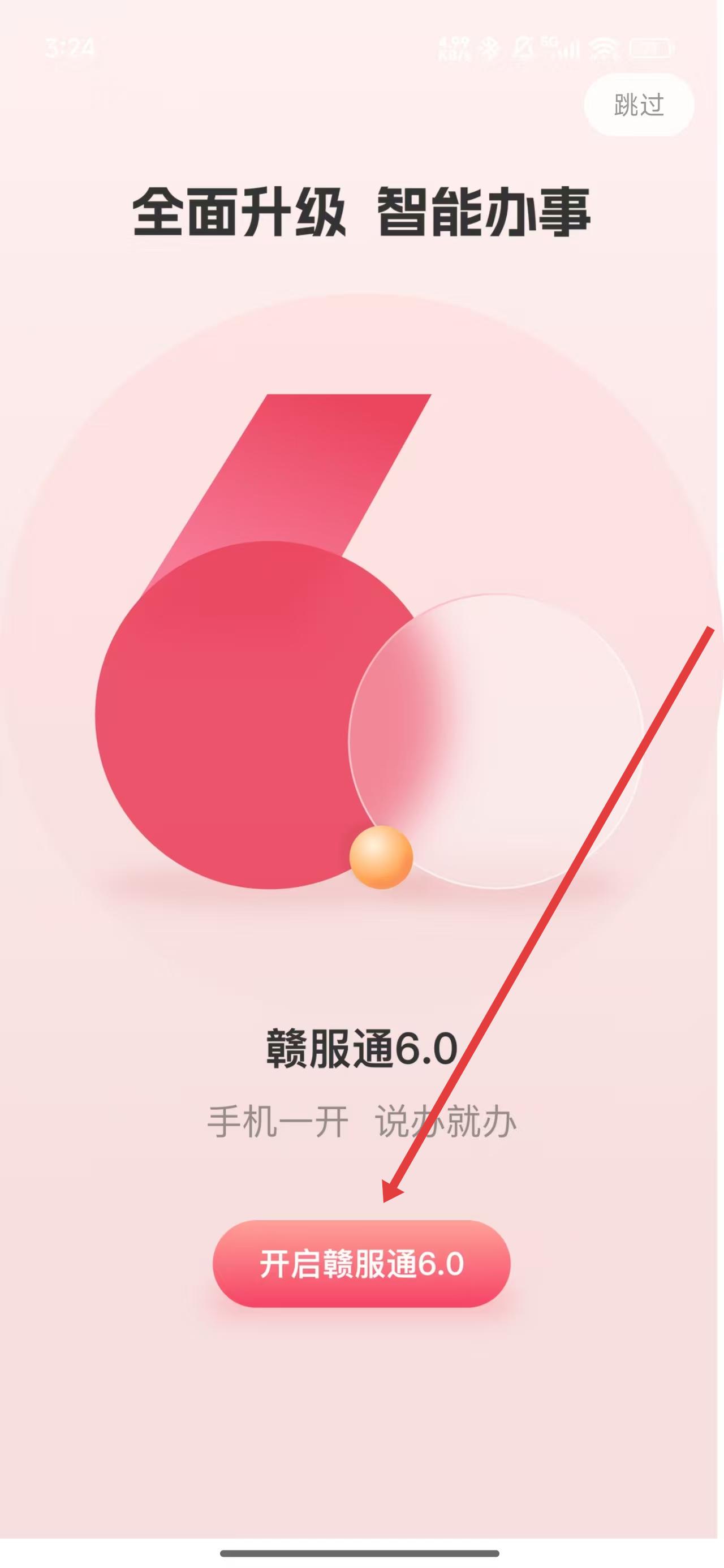 2、在贛服通使用引導(dǎo)頁(yè)中,點(diǎn)擊開啟贛服通6.0按鈕進(jìn)入。