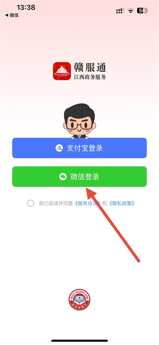 1、打開贛服通app,點(diǎn)擊微信登錄選項(xiàng)。