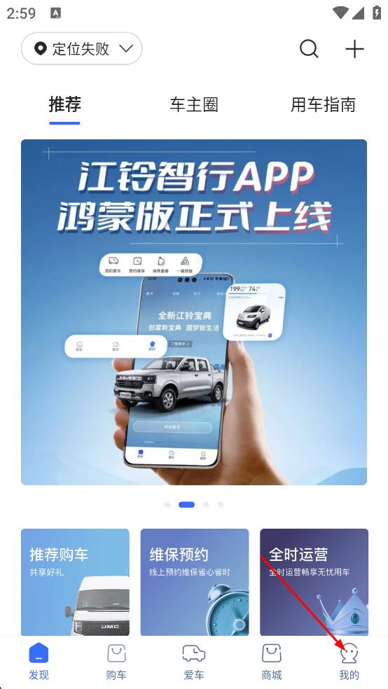 1、打開江鈴智行APP,進入首頁后,點擊頁面底部右側(cè)“我的”選項,進入個人中心頁面。