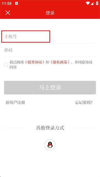 3、在登錄頁面,點(diǎn)擊輸入框,輸入手機(jī)號碼。