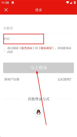 4、輸入密碼,點(diǎn)擊馬上登錄,即可完成登錄。