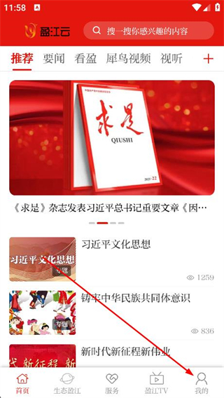1、打開盈江云,點(diǎn)擊底部導(dǎo)航欄的我的選項。