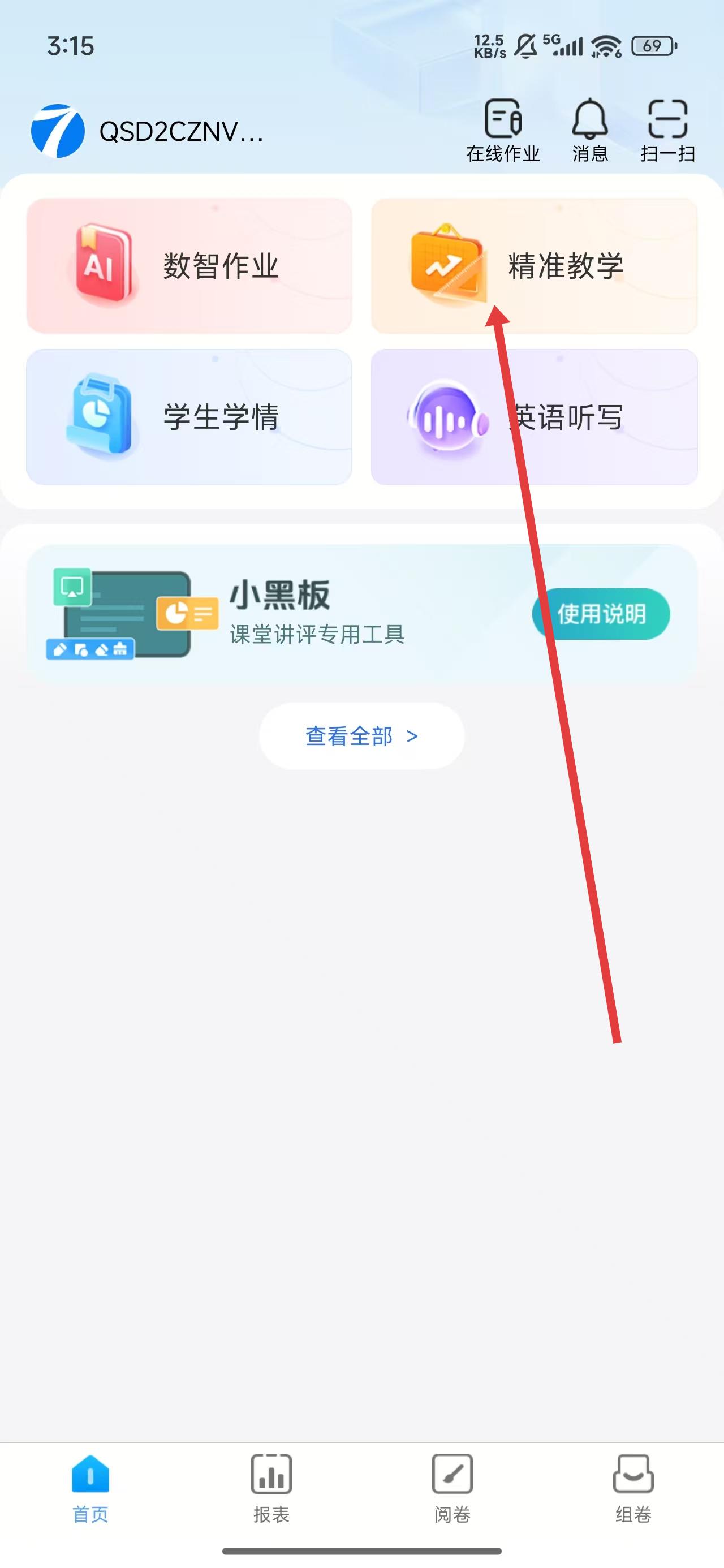 3、在進入到精準教學頁面中,可以點擊優(yōu)秀學生分布右側的查看按鈕,進入查看。