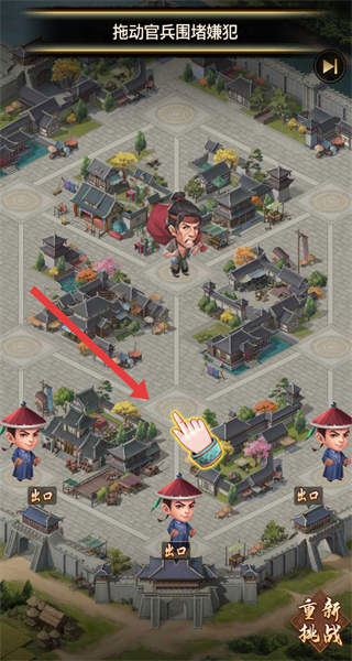 3、可以通過拖動官兵,對犯人進行封堵,縮小犯人逃跑線路。