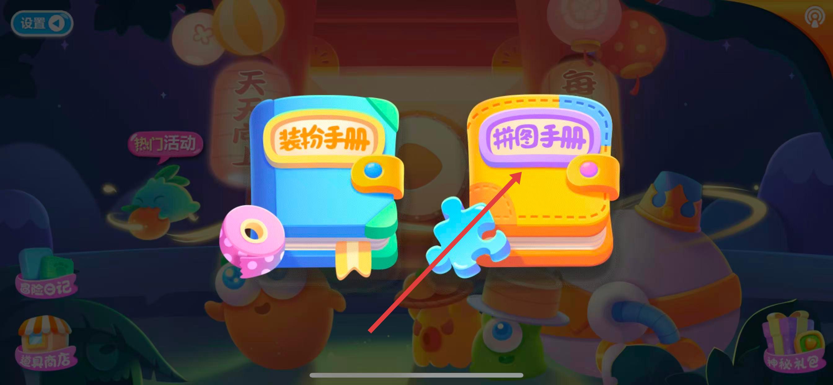 2、進入冒險日記相關(guān)界面后,選擇拼圖手冊,進入拼圖玩法專屬頁面。