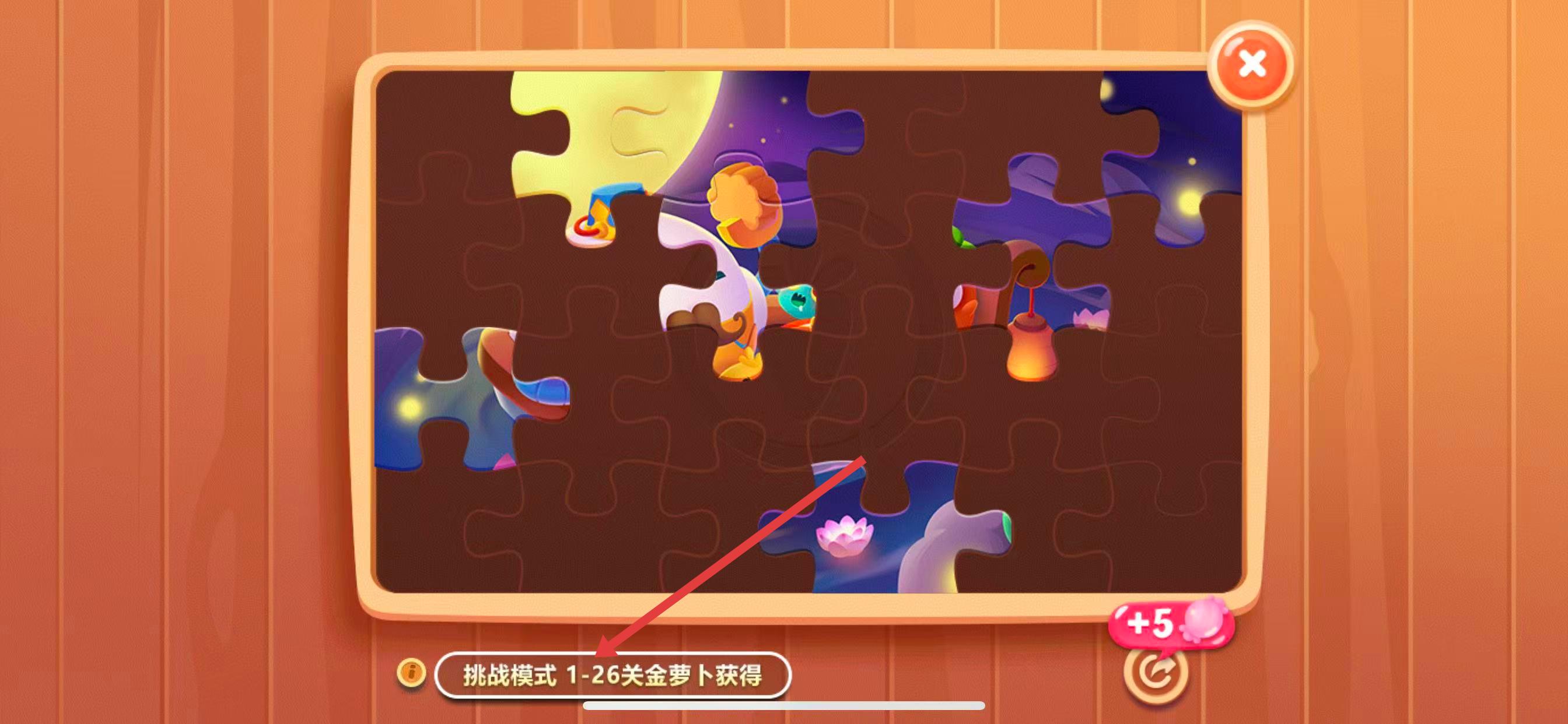 4、查看其碎片獲取條件提示,完成對應(yīng)條件,像達成挑戰(zhàn)模式特定關(guān)卡金蘿卜等目標,即可獲得對應(yīng)拼圖碎片。