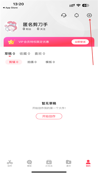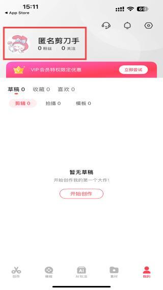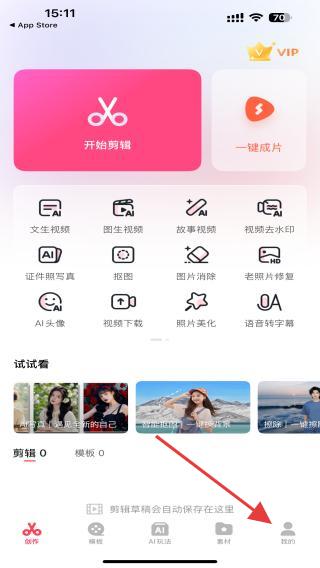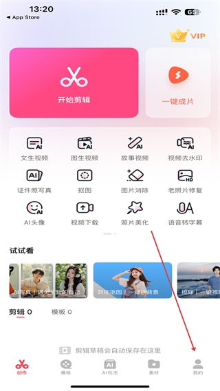 1、打開快剪APP,進(jìn)入到首頁內(nèi),點(diǎn)擊底部導(dǎo)航欄的我的。
