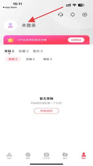 2、進(jìn)入個(gè)人頁,點(diǎn)擊頁面上方的未登錄區(qū)域。