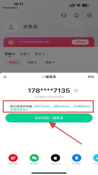 3、在彈出的登錄界面中,勾選我已閱讀并同意用戶協(xié)議、隱私協(xié)議等相關(guān)協(xié)議,再點(diǎn)擊本機(jī)號一鍵登錄的功能按鈕。