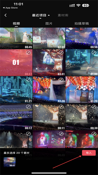 2、進(jìn)入相冊的頁面內(nèi),選擇好后點(diǎn)擊導(dǎo)入的按鈕。