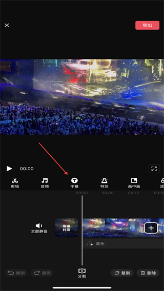 3、進(jìn)入剪輯的頁面內(nèi),點(diǎn)擊下方字幕的按鈕。