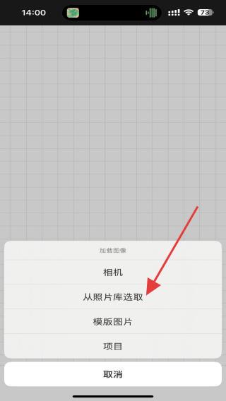 2、在彈出的界面內(nèi),選擇從相片庫選取。