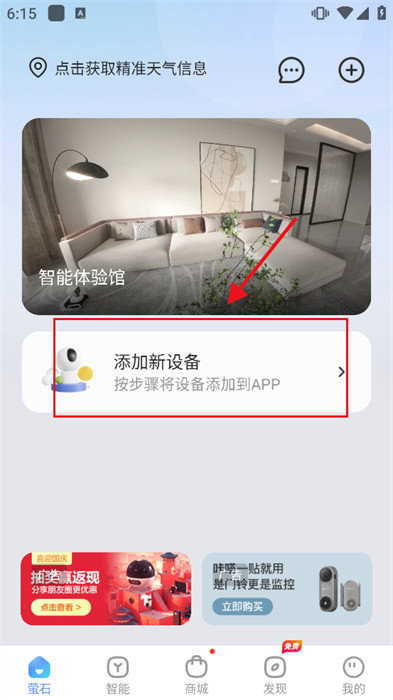 2、隨后,進入到首頁,點擊中間【添加設備】,如下圖所示;