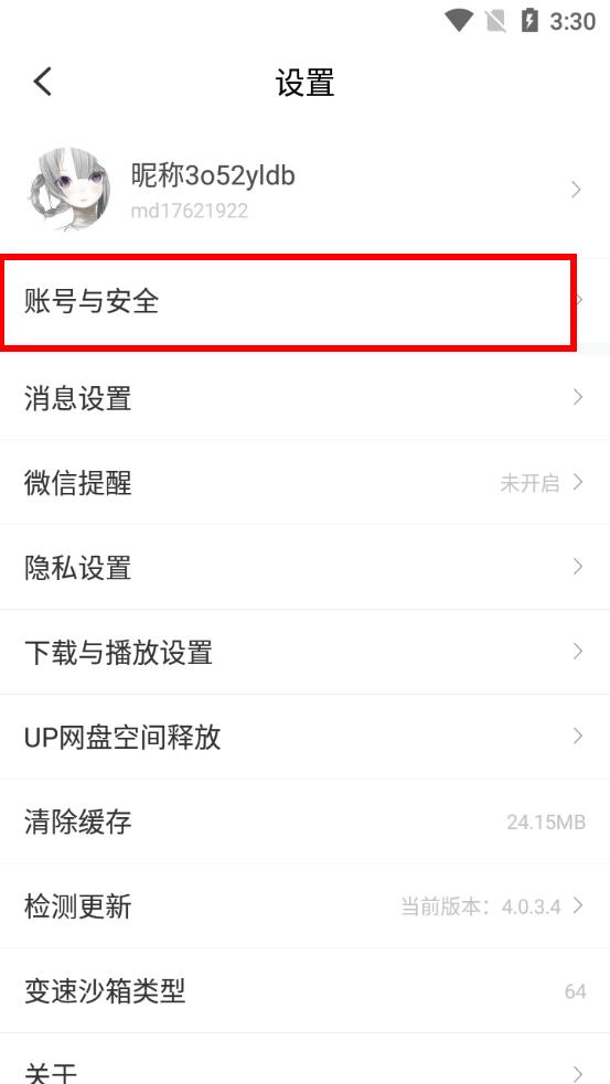 3、在設(shè)置界面中,點(diǎn)擊賬號(hào)與安全選項(xiàng)。