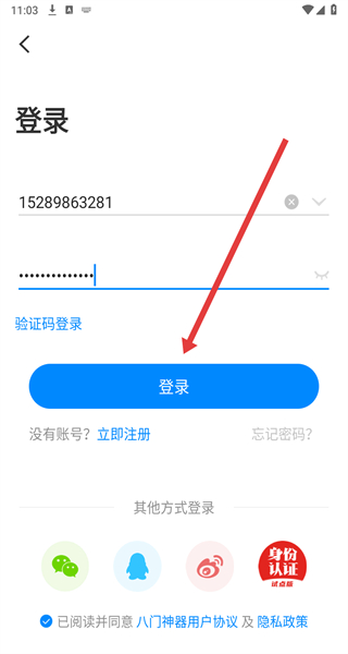 4、在填寫好登錄信息后,點(diǎn)擊勾選同意按鈕,再點(diǎn)擊登錄按鈕即可完成登錄。