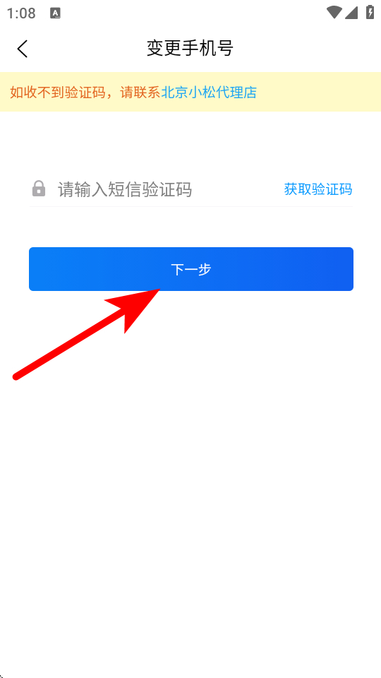 3、在變更手機(jī)號頁面,輸入原手機(jī)號的短信驗(yàn)證碼后點(diǎn)擊下一步。