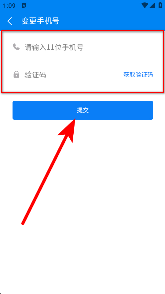 4、輸入新手機(jī)號及對應(yīng)驗(yàn)證碼后,點(diǎn)擊提交完成手機(jī)號換綁操作。
