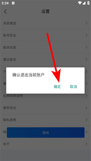 4、彈出確認(rèn)退出當(dāng)前賬戶的確認(rèn)框后,點(diǎn)擊確定,完成賬號退出操作。