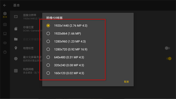 3、在圖像分辨率列表中選擇目標分辨率如1920x1440、1280x720等。