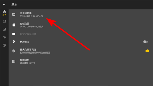 2、進入基本設置頁面后,點擊圖像分辨率選項。