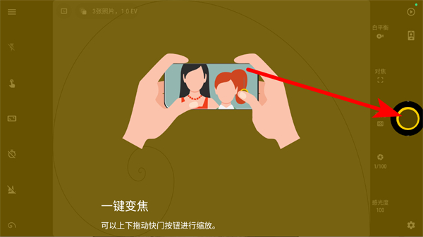 4、返回拍攝界面,可上下拖動快門按鈕進行變焦,完成拍攝設置操作。