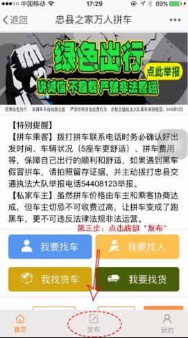 與此同時(shí),沒(méi)有下載忠縣之家APP依舊可以通過(guò)微信、網(wǎng)頁(yè)、qq群等方式發(fā)布和查看忠縣之家萬(wàn)人拼車平臺(tái)上的信息,但無(wú)法體驗(yàn)最新功能!