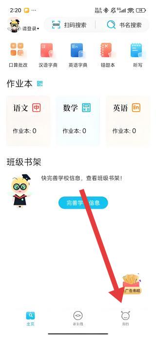 1、進入到軟件后,打開作業(yè)精靈主頁,通過點擊底部右側我的圖標,進入個人中心界面。