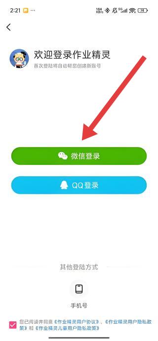 3、在登錄頁面,勾選用戶協(xié)議后,可以選擇微信或QQ等登錄方式,完成作業(yè)精靈賬號登錄。