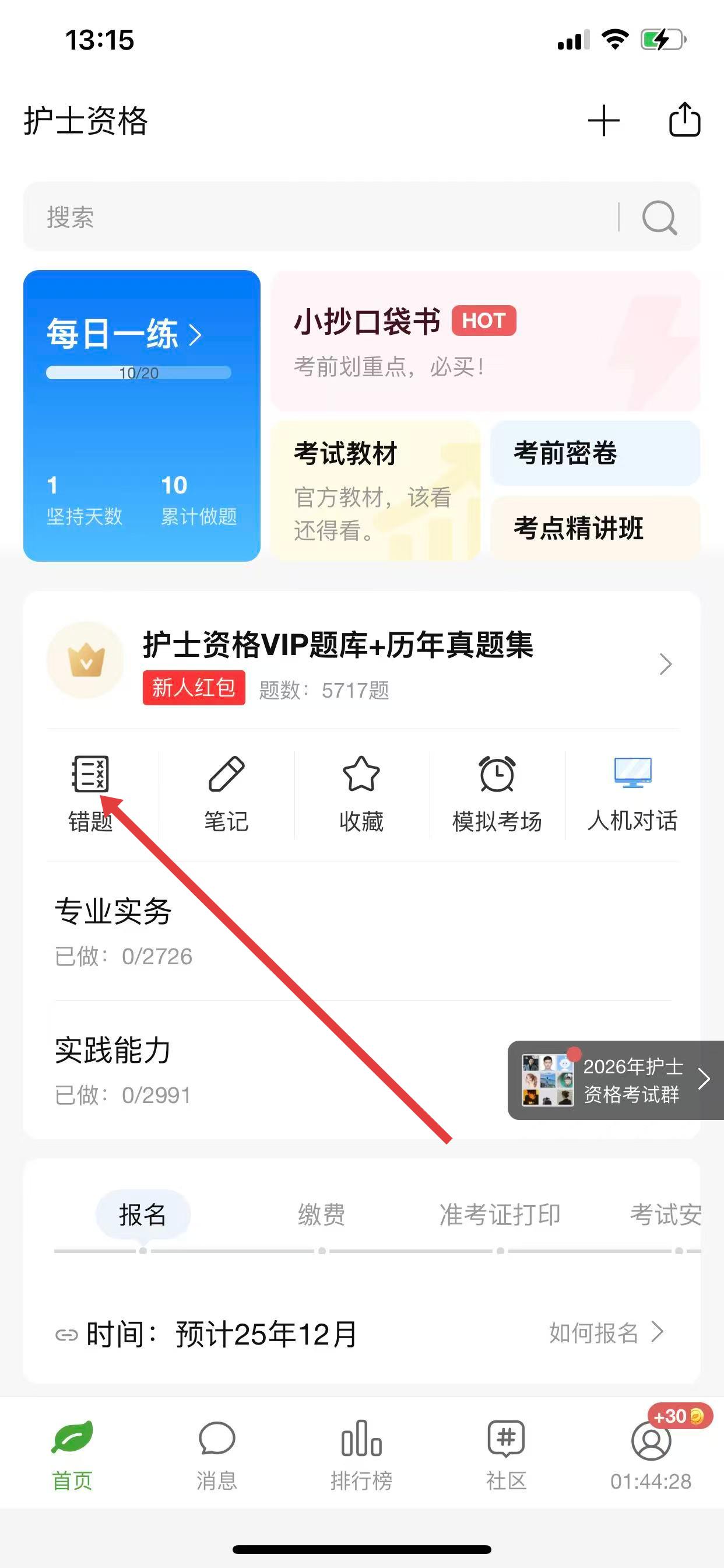 1、打開易哈佛App,進(jìn)入首頁(yè),點(diǎn)擊錯(cuò)題圖標(biāo)。