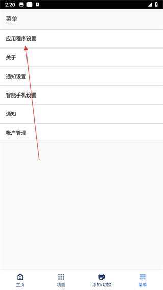2、在菜單頁(yè)面,點(diǎn)擊應(yīng)用程序設(shè)置選項(xiàng)。