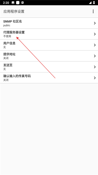3、在應(yīng)用程序設(shè)置頁(yè)面,點(diǎn)擊代理服務(wù)器設(shè)置。
