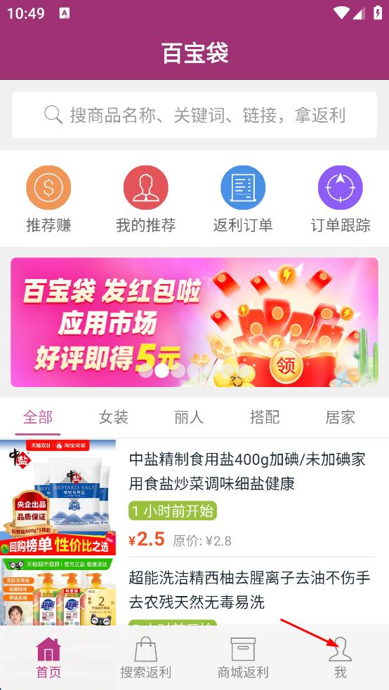 3.返利:通過(guò)百寶袋搜索商品全稱(或者關(guān)鍵詞),找到并購(gòu)買相應(yīng)的商品,確認(rèn)收貨后,淘寶就會(huì)把相關(guān)的隱藏折扣通過(guò)百寶袋支付給親,這就是返利。